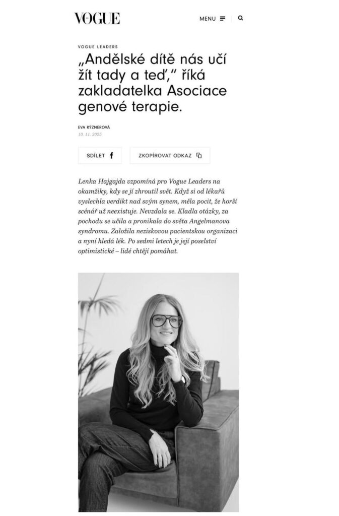 Někdo si nechává fotit fotky pro radost, někdo se fotí pravidelně, aby měl fotky vždy aktuální, jiný se fotí vyjímečně a někdo, když potřebuje fotky třeba pro svůj článek ve VOGUE :) S Lenkou Hajgajda, zakladatelkou Asociace genové terapie, jsme nafotily řadu různorodých a zároveň konzistentních portrétů tak, aby je mohla používát napříč médii ke svým rozhovorům. A ten ve Vogue byl první , ve kterém se naše společná práce objevila. Moc, Leni, gratuluji ke krásnému článku.